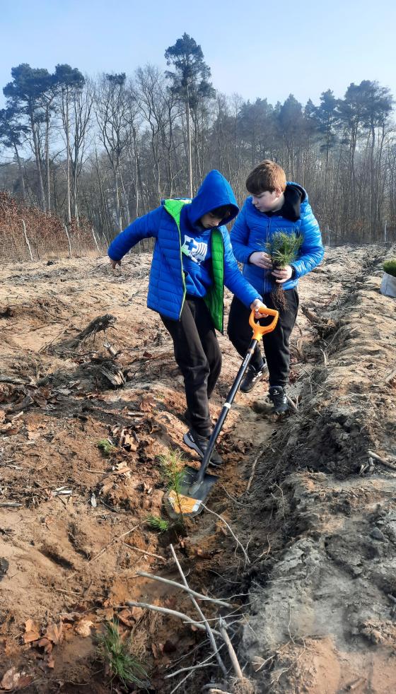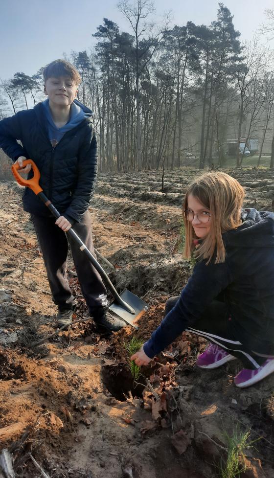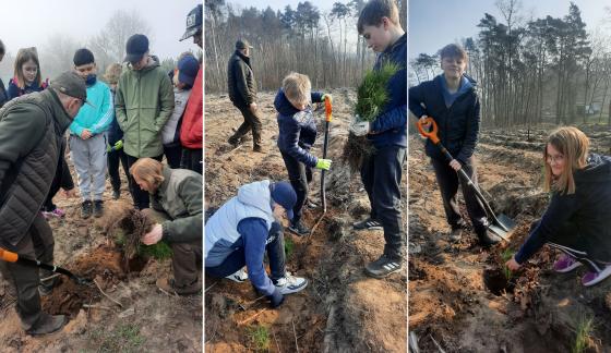 Uczniowie ze Szkoły Podstawowej nr 1 w Międzychodzie posadzili 1000 sztuk sosny dwuletniej na powierzchni 0,10 ha.