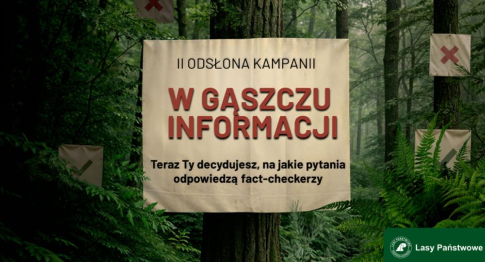 „W gąszczu informacji. Nie błądź! Sprawdzaj”! - podsumowujemy pierwszy etap kampanii o dezinformacji w środowisku przyrodniczym 22.09.2025 drukuj Lasy Państwowe zakończyły pierwszy etap ogólnopolskiej kampanii edukacyjnej „W gąszczu informacji. Nie błądź! Sprawdzaj”! poświęconej dezinformacji w środowisku przyrodniczym i jej wpływie na klimat. To pierwsza tego typu kompleksowa kampania w Polsce. Teraz, zgodnie z zapowiedziami, czas na drugą odsłonę. O tym na jakie pytania odpowiedzą fact- checkerzy Instytutu Dyskursu i Dialogu zdecydują internauci.