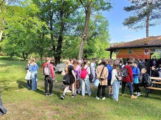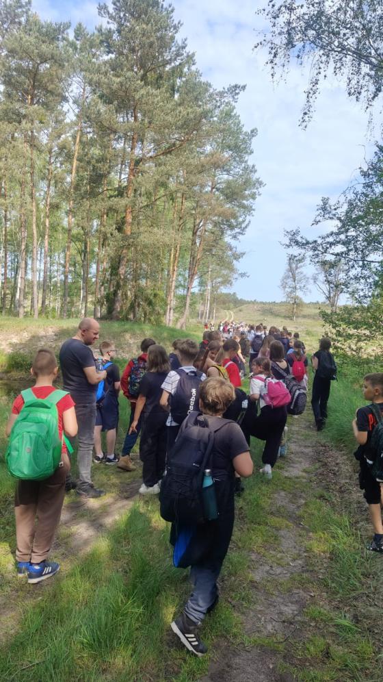 Nadleśnictwo Międzychód we współpracy z Cechem Rzemiosł Różnych Międzychodzko-Drezdeneckim zorganizowało edukacyjny rajd pieszy dla około 80 uczniów ze Szkoły Podstawowej nr 1 w Międzychodzie. W wydarzeniu wzięli udział uczniowie klas IV, V i VII, którzy pod opieką leśników i przewodnika – Pana Andrzeja Wilkońskiego – przemierzyli 8-kilometrową trasę pełną śladów po nieistniejącej już osadzie.