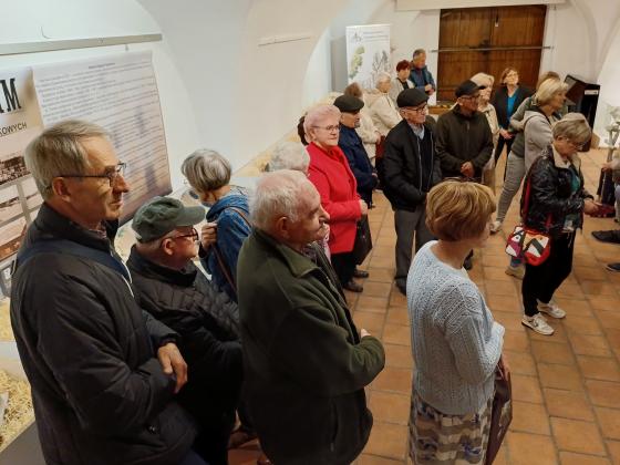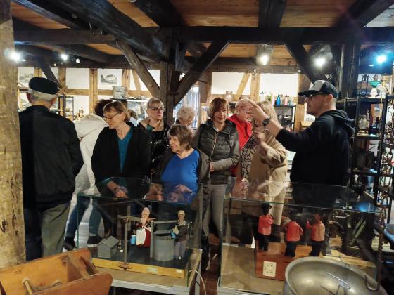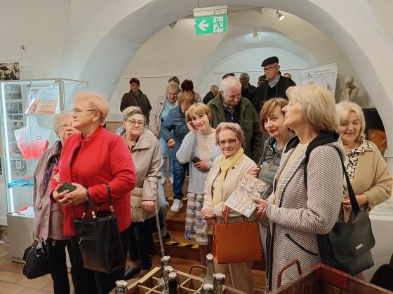 Grupa ludzi zwiedza muzeum.