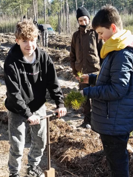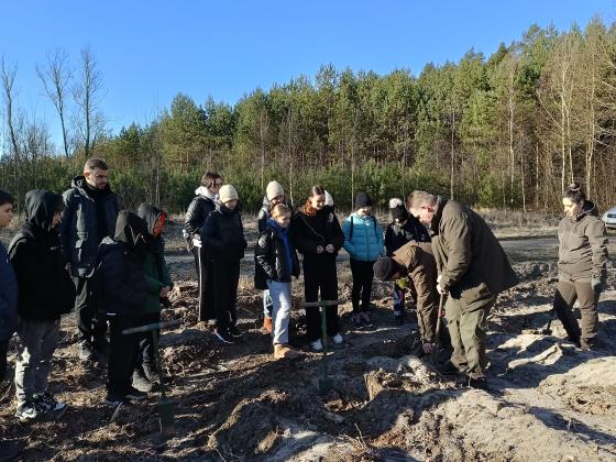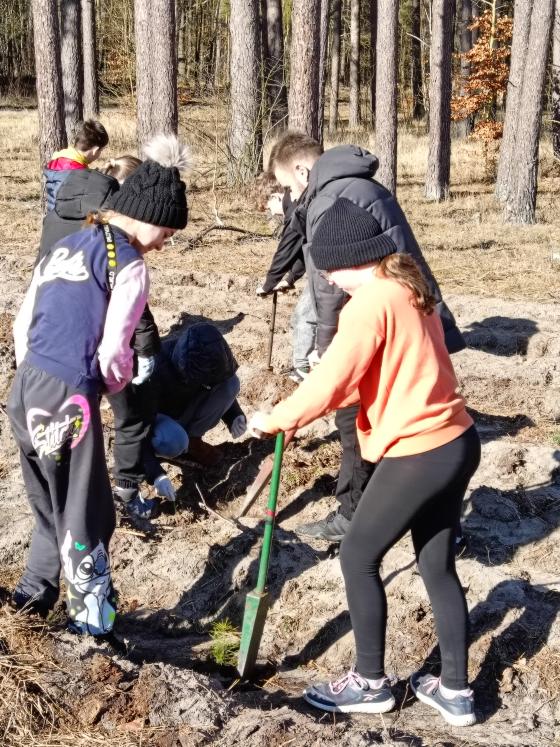 Pod czujnym okiem leśników oraz z pomocą pana leśniczego, dzieci nauczyły się, jak prawidłowo sadzić drzewa.